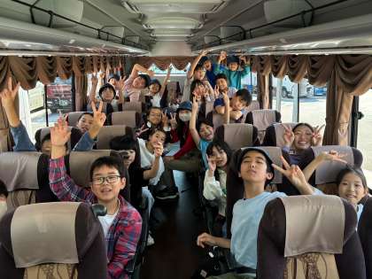 ?三芳パーキングを出たら各クラス、バスレクが始まっているそうです。みんな元気です。
