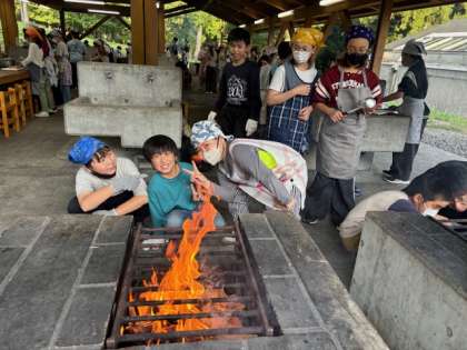 火も十分に起こせました。野菜も頑張って切っています。