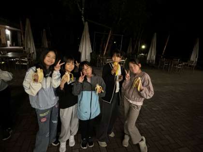 動画を撮っていたので写真がなくてごめんなさい。キャンプファイヤーの後はバナナを食べました。