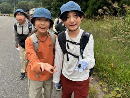21世紀の森ハイキングと言ってもちょっとした登山です。のんびり歩きながら草花で遊んだり、猪の足跡を見たり楽しみながら歩きました。