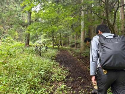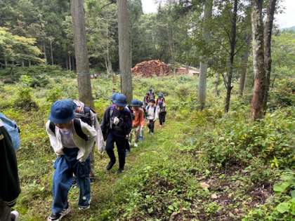 針葉樹林の下は雑草があるけれど、広葉樹林の下には日陰になって雑草がないね…などと先生や補助員さんに教えてもらいながら楽しみました。