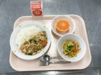 魚のしょうが風味焼きは白身の魚に米粉と片栗粉をまぶし、上から油をぬってオーブンで焼きました。だし汁、しょうゆ、さとう、ねぎ、酢、しょうがを合わせたたれをかけてあります。カリッと焼いた魚にネギ入りの甘酸っぱいたれがからみ、おいしく魚を食べられます。のっぺい汁は新潟県の郷土料理です。秋が旬のサトイモがはいったとろみのある汁物です。