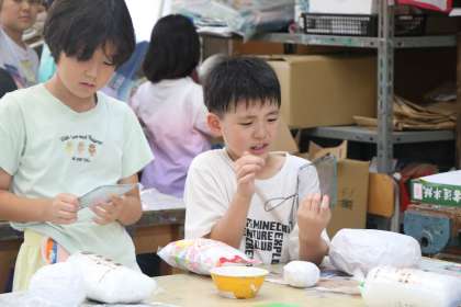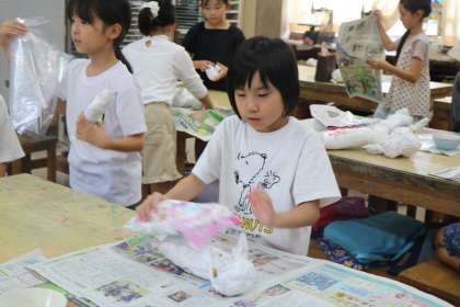 イメージが膨らむと、作品がついつい大きくなってしまいます。作品置き場を決めて、その作品のおうちも作るのだそうです。楽しそうです、そして子どもの発想はとってもかわいいです。