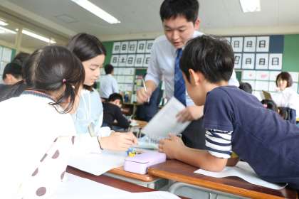 「いや〜砧の子どもたちは本当に素直で一生懸命でかわいいですね。毎回砧小の授業を見ると思います。」とほめていただきました。