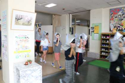 10月の避難訓練を実施しました。家庭科室から出火なので西階段は使えず、避難場所もなるべく家庭科室から遠い正門側です。避難指示をよく聞き落ち着いて行動する子どもたちです。