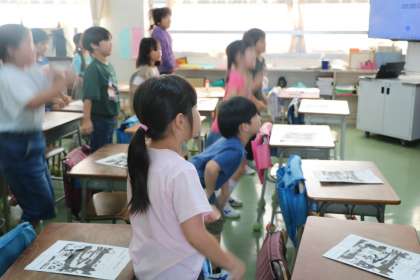 ハロウィンにちなんだ単語を使いながらアクティビティに一生懸命です。