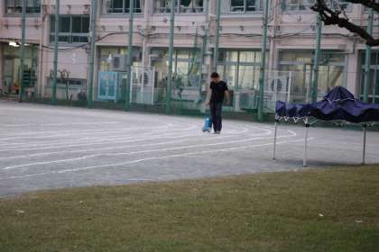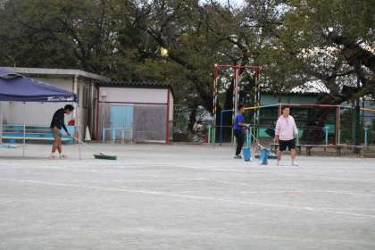 昨日の夕方の様子です。BOPの外遊びが終わり日が暮れる前に校庭のライン引きをして翌日の準備をする先生たちです。朝早くから、子どもたちがすぐ練習できるよう準備万端です。子どもたちは毎日全力で練習や準備をしていますが先生たちも同じです。