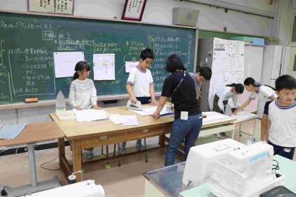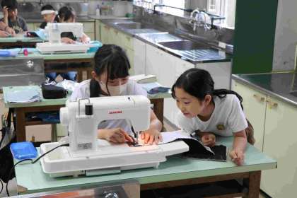 布を折って待ち針でとめる、アイロンで折り目をつける、ミシンで縫うなどできることが増えてきました。