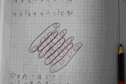 ○がいくつあるか、ノートに図を書いたり、タブレットで○を移動させて考えたりして調べました。