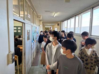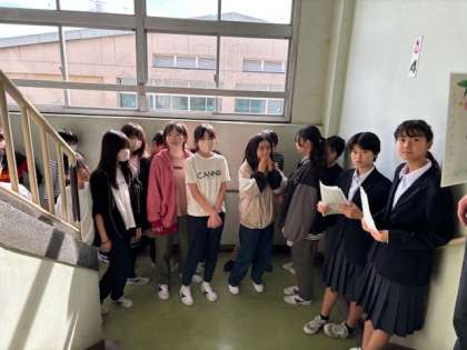 一年生の授業をしている様子を参観したり、図書室や理科室を案内してもらいました。