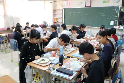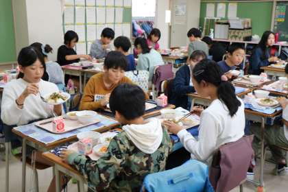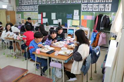 今日は給食の時間、全クラスを回ってきましたがどのクラスも落ち着いて給食の時間を過ごしていました。