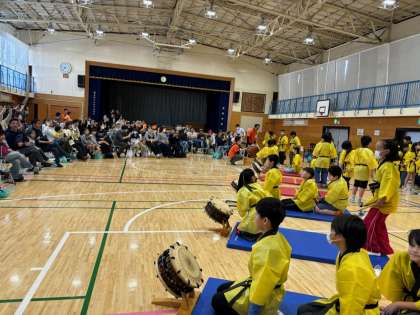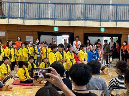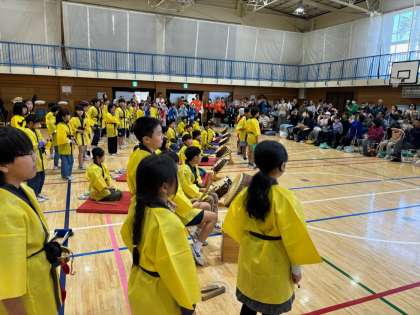 体育館にはたくさんの保護者・地域の方が待っていてくださいました。保存会の方が会場入り口で「頑張れ!」「楽しんで踊っておいで!」と一人ひとりに声をかけてくださいます。