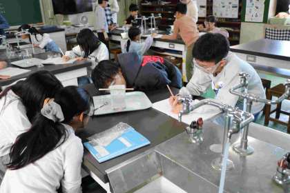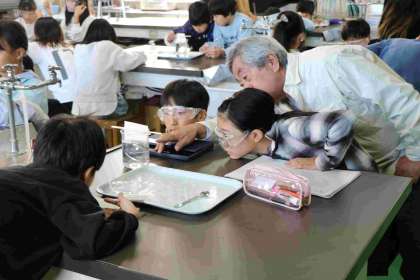食塩を水に溶かしています。水に溶けるとはどういうことか、どんな様子で溶けるか、じっくりじっくり観察しています。