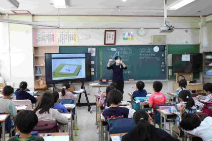 3年生の算数の様子です。コンパスを使って円をかく学習をしました。