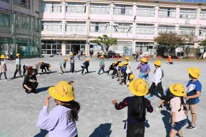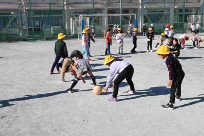2年生は、円になってボール送りのゲームをしているクラスもありました。