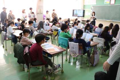 2年生道徳の様子です。学校生活をよりよくするためにというテーマで「私たちの校歌」という単元を勉強しています。
