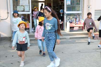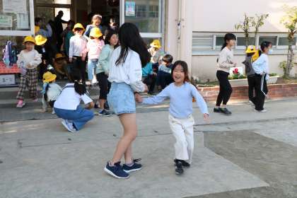お昼休みは、なかよし班遊びです。今日はAグループが外、Bグループが室内で遊びます。