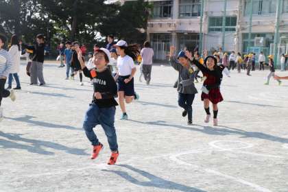 暖かな昼休み、なかよし班のみんなで仲良く元気いっぱい遊んで、心も温かくなりました。