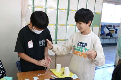 6年生の様子です。11月26日に予定されている、なかよし班ロング集会「作って遊ぼう砧っこランド」に向けて準備をしています。ぶんぶんコマや2つボールのけん玉など、1〜5年生が楽しんでくれるかな、作り方これでわかるかな・・・と、いろいろなことを想定して準備しています。