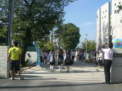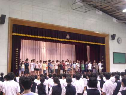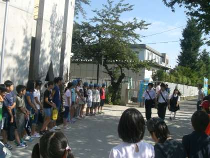 6年生の代表委員が、朝の挨拶をするために、砧中学校に行きました。これまでは、砧中学校のお兄さん、お姉さんたちが、小学校に挨拶に来てくれていましたが、今日は、反対に明正小学校と山野小学校の代表委員の人たちと一緒に挨拶を行いました。「砧の学び舎」の活動の一環です。挨拶終了後は、全校朝会に参加し、紹介していただきました。お兄さん、お姉さんたちから大きな拍手をいただきました。すがすがしい気持ちで、各小学校に帰って行きました。
