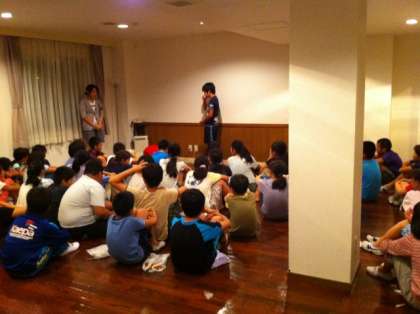 今日一日の良かったこと、直した方がいいことなどを班で話し合いました。明日は、今日以上に、楽しい時間を過ごしそうで楽しみです。