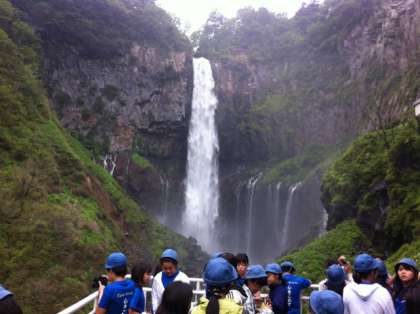 滝の水しぶきが顔にあたり、気持ちがいいです!