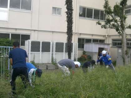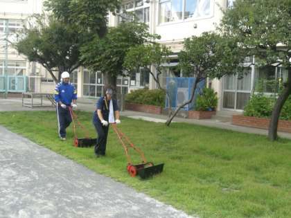 皆の力で短時間で終了しました。これで、全児童がだいこんの種蒔きができます。ありがとうございました。芝刈りもやっていただきました。