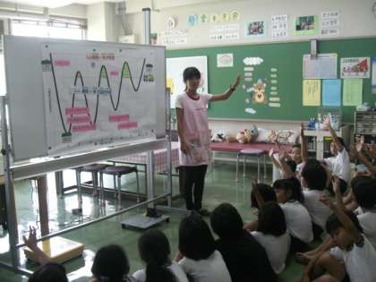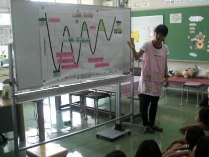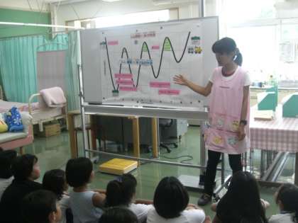 2学期の発育測定を各学年が3日間で行っています。養護教諭の徳永先生から、睡眠の大切さについて学んだあと、身長と体重を計測します。