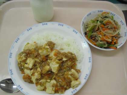 10月1日(月)今日の給食 麻婆丼 塩ナムル 牛乳