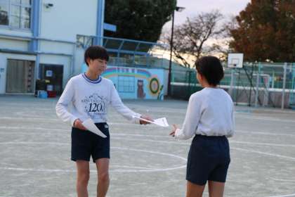 記録を本人に渡して、ふりかえります。前回のタイムと比べて一喜一憂しています。