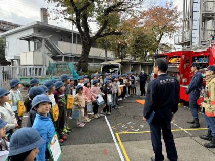消化訓練をさせていただいたり、消防車の中を見せていただいたり、いろいろなお話を聞き勉強になりました。ありがとうございました。