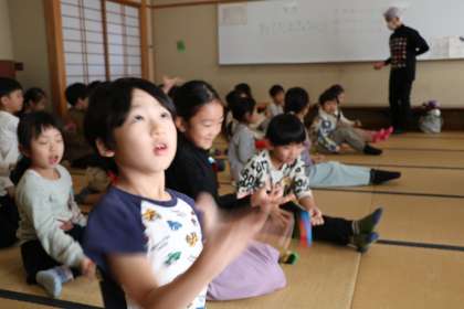 1年生生活科の様子です。今日は東京お手玉の会の方に来ていただき昔遊びのお手玉を教えていただきます。