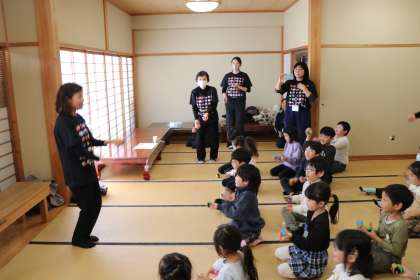 最後に歌に合わせtお手玉をしながら体を動かす、お手玉ダンスを教えていただきました。とっても楽しくできました。ダンスも上手に出来るようになり