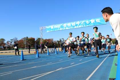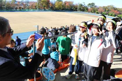校長先生に記念写真を撮ってもらう中学生もリラックスした表情です。砧小の先輩もいます。昨年度まで駅伝チームで一緒に頑張ってくれた先輩がいると、小学生は、先生たちも、ほっとし嬉しい気持ちになります。