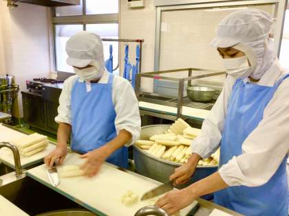 きりたんぽ汁は秋田県の郷土料理です。ごはんをすりつぶし、芯にした棒ににぎりつけて焼いたものを秋田県では「きりたんぽ」と呼びます。きりたんぽを鍋に入れたきりたんぽ鍋が有名です。きりたんぽの名前の由来には、いろいろな説があります。がまの穂を「たんぽ」といったこと、やりの稽古につかった「たんぽやり」に形が似ていることから名づけられたと考えられています。