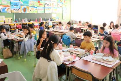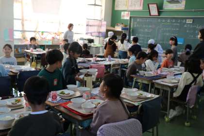 12月から、1年生から5年生も、この形で給食を食べることを始めました。