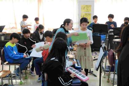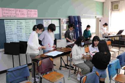 6年生の音楽の様子です。クラスでの合奏に向けて、自分が担当したい楽器の練習を熱心にしていました。