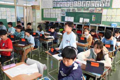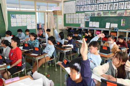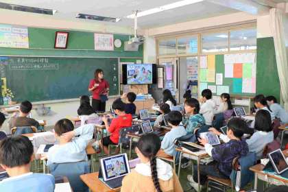 5年生の社会の様子です。絵の中から情報を伝えているものを探していました。