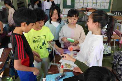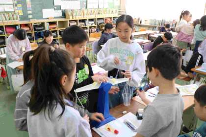 たくさんの物を重いと思う順に予想しました。「大きいからといって重いとは限らない」と慎重に考えていました。