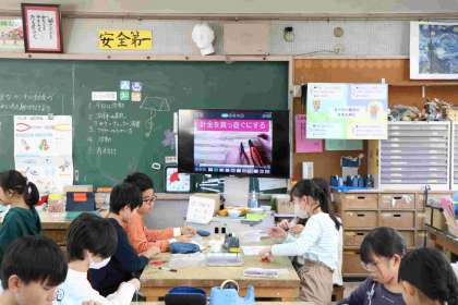 先生の説明の後も、テレビに動画が繰り返し再生されていて、気を付けるポイントを確認・復習しながら進められるように配慮されていました。