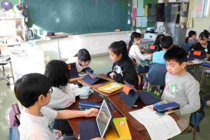 玉川上水の「水路の決め方」「道具や工事の仕方」「水の配り方」「水を安全に保つ方法」などについて、班のメンバーで分担して調べました。今日は、それぞれが調べたことの報告会(情報共有)をしました。