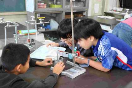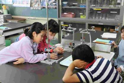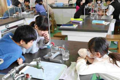 4年生の理科の様子です。温度が変わると水の体積も変わるのか実験しました。