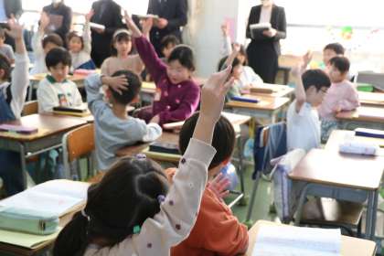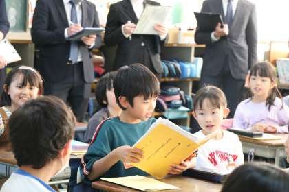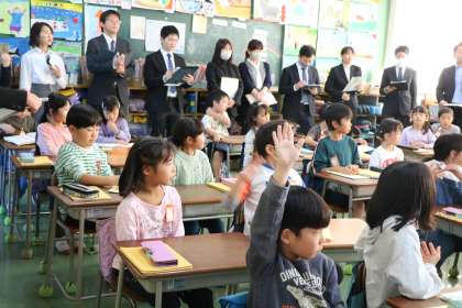 今日は2年生の授業を講師の先生はじめ砧小学校全員の先生が参観し、勉強する校内授業研究です。