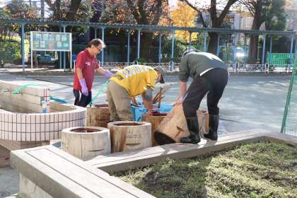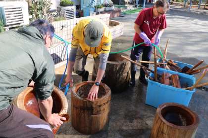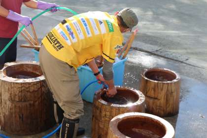 主事さんたちも、2週間前から水を入れていた道具をもう一度きれいに洗いました。
