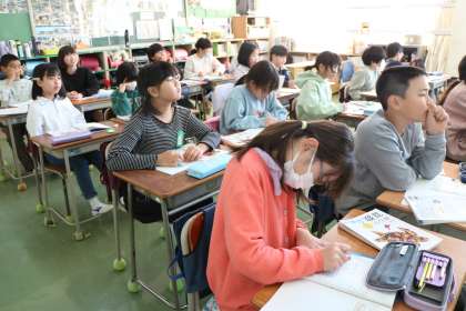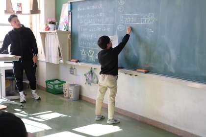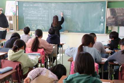 4年生算数・変わり方調べの様子です。伴って変わる2つの量の変わり方を、いろいろな言い方で説明します。今まで学習してきたことを使い、式で表す子もいます。高学年になり比例・反比例の学習に発展していく大切な単元です。