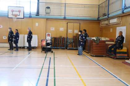 本番前最後のリハーサルを保存会の方が見守ってくださいました。緊張感いっぱいの子どもたちです。