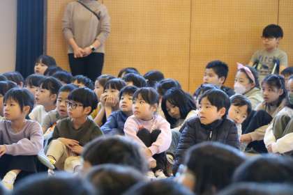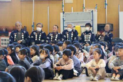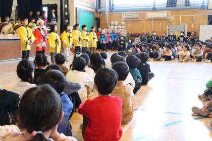 いよいよ始まりました。保存会の方々も、1・2・4・5・6年生も、保護者の皆様も真剣に聴いています。
