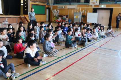 幼稚園のお友達が到着しました。拍手でお迎えし、いよいよ会の始まりです。
