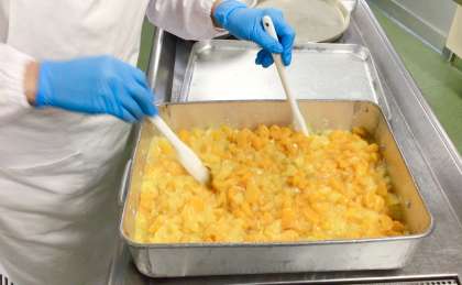 今日のゼリーは冷やし固めた後にくずす「クラッシュゼリー」です。
