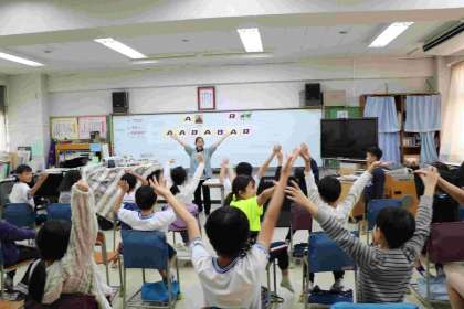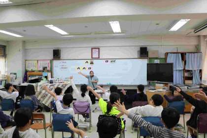 そして、ある曲を聴きながら、さっき聴いた「王の行進」が出てきたら左手、「馬のダンス」が出てきたら右手を挙げました。最後は、両方の音楽が重なり合ったので両手。みんなしっかりと聴き取れました。